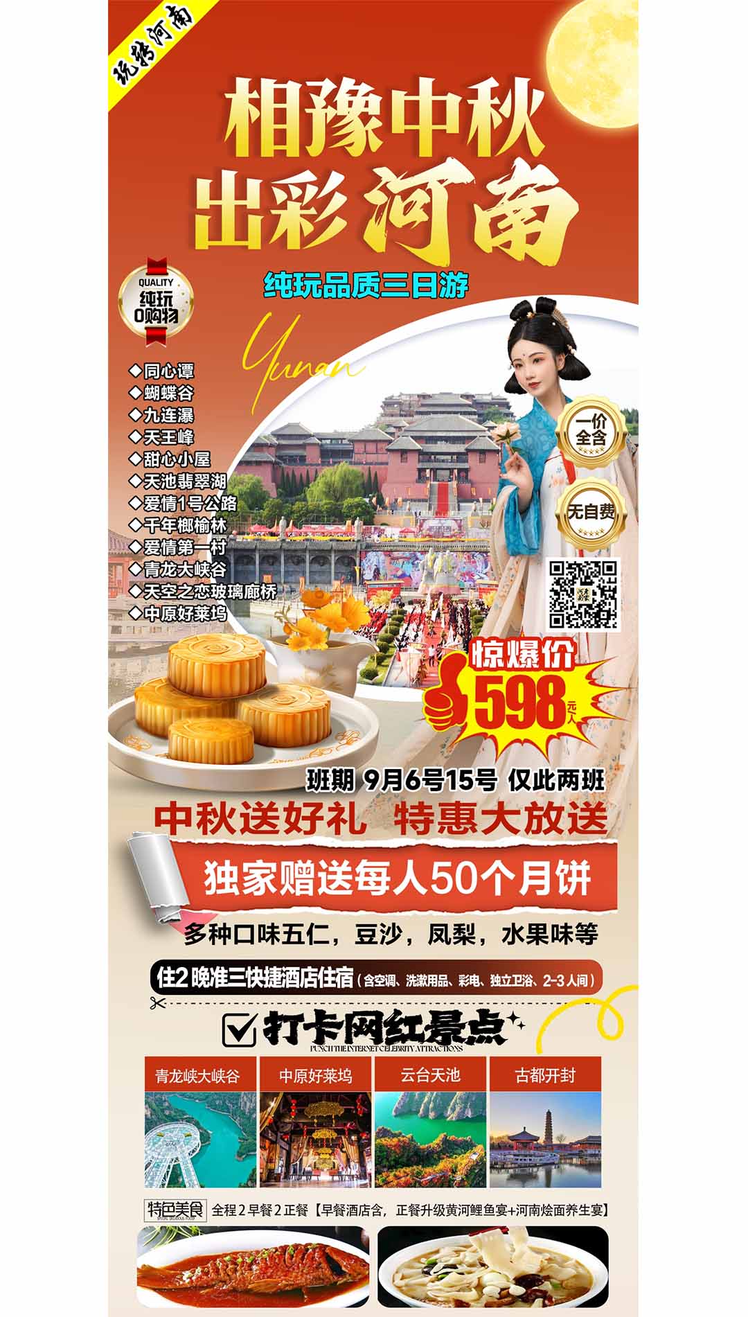 全程2早2正餐【住宿含早,正餐升級(jí)河南燴面宴和黃河鯉魚宴,不吃不退】